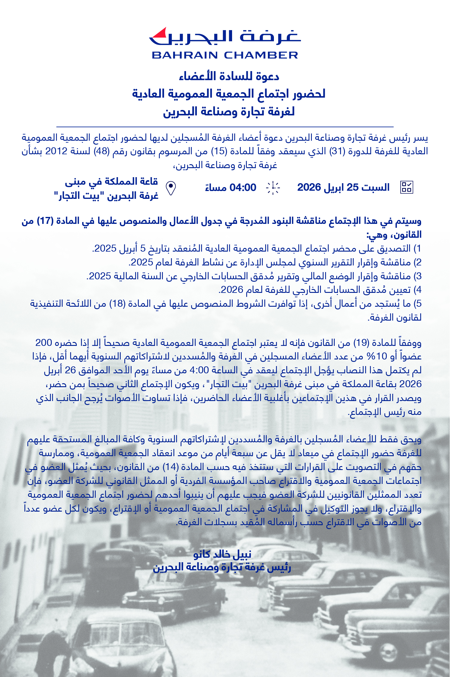 المرسوم بقانون رقم (48) لسنة 2012 بشأن غرفة تجارة وصناعة البحرين وتعديلاته